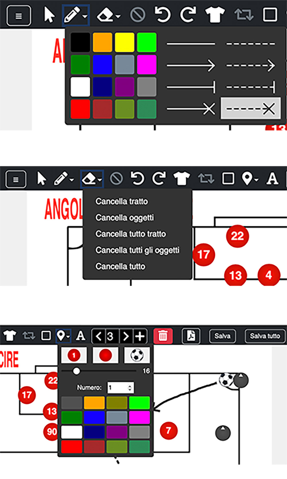 Linee precise, colori personalizzabili, simboli tattici e frecce direzionali. Tutto ciò che serve per rappresentare ogni movimento e strategia.
